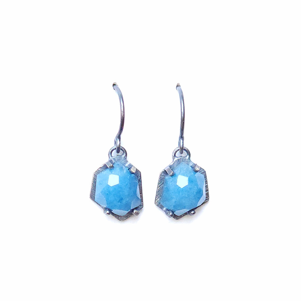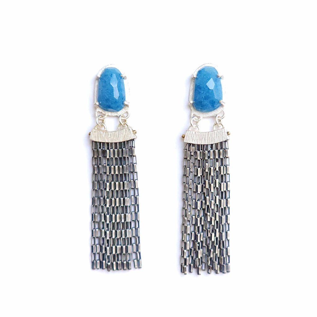 Surface Cut Turquoise Triangle Bridle Bit Earrings